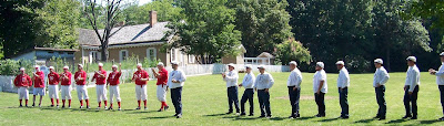 As a connoisseur of all thing nineteenth century, I had heard of this sort of thing before: teams of baseball amateurs meeting together every week or so in the summer, dressing up in period-style uniforms, and resurrecting a way of life long since consigned to the history books. When I told my wife about it, she said it sounded like Civil War reenacting with bats.